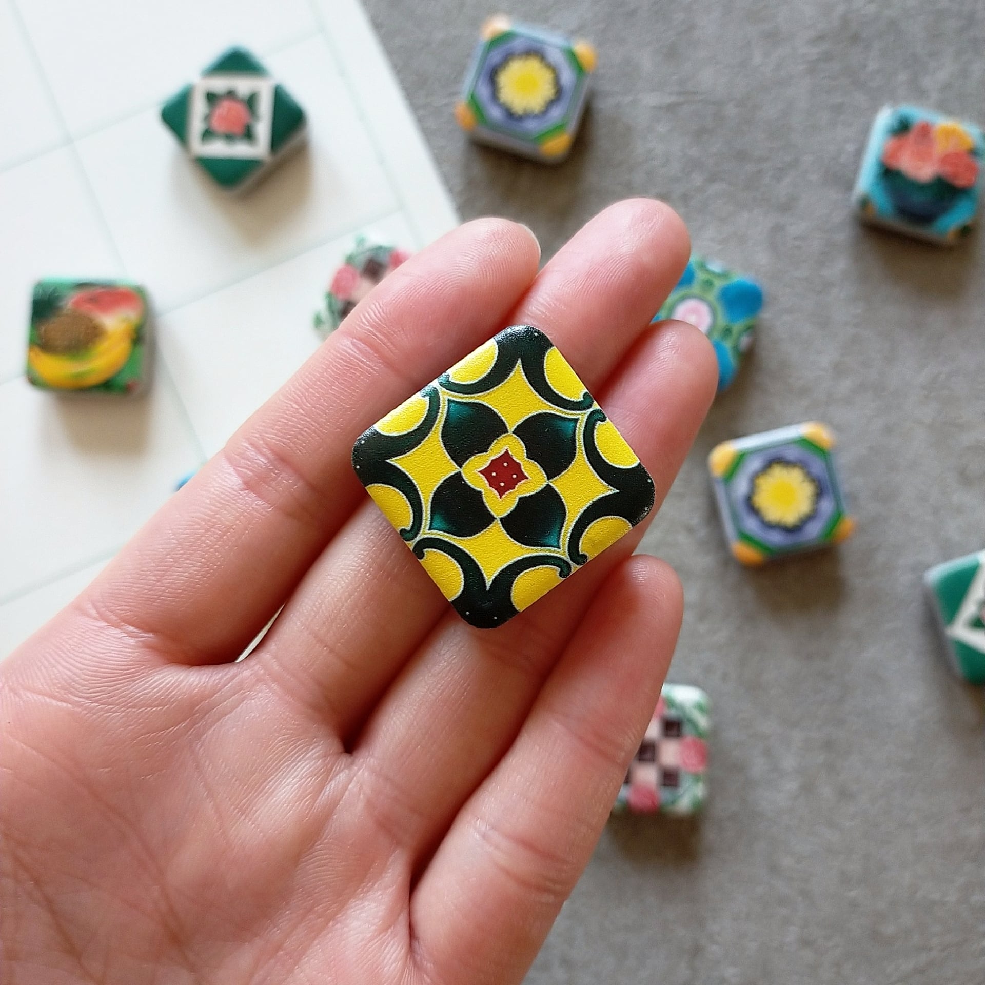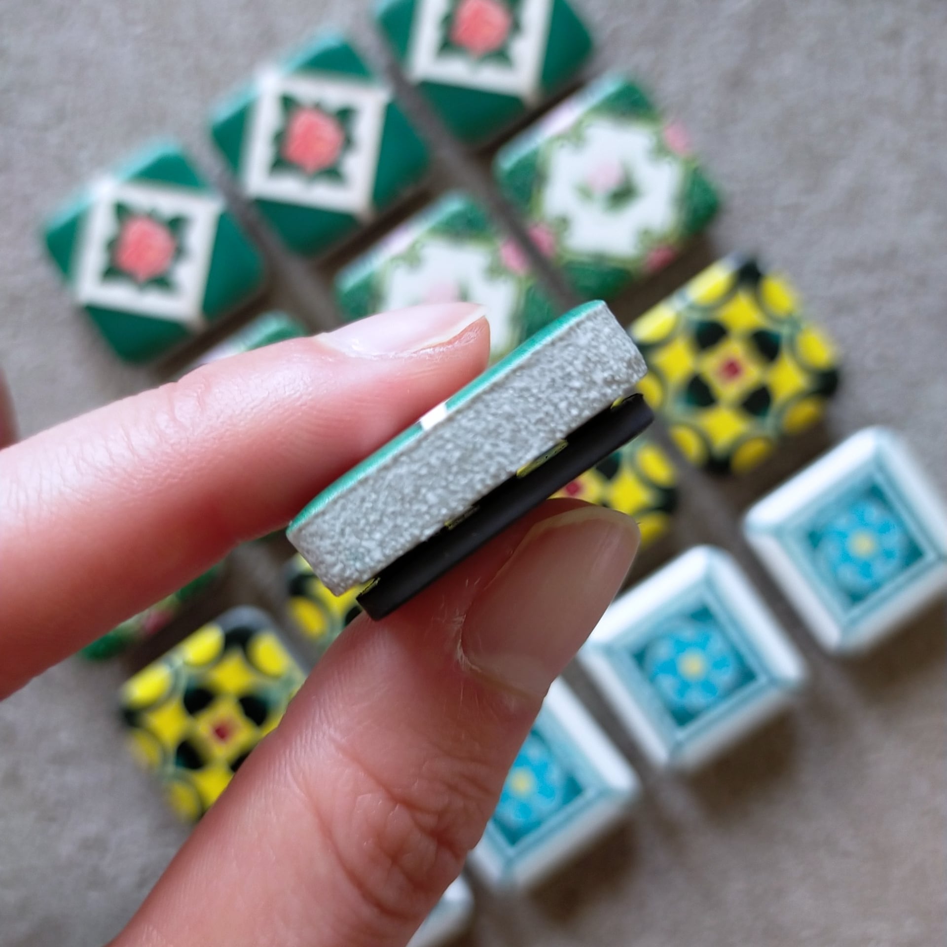 石でできているので小さいのに重みがあって本物のタイルみたいな素材感です。